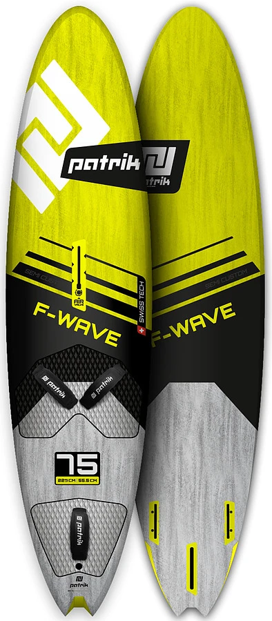 The F-wave comes equiped with 3x PATRIK fins as a classic Thruster Setup with a bigger center fin and smaller side fins. This has proven to be the fastest setup for waves and jumping. The Center Powerbox allows the use of bigger Centerfins without the risk of breaking the board. The slot box sides save weight and leave you with enough trim options.