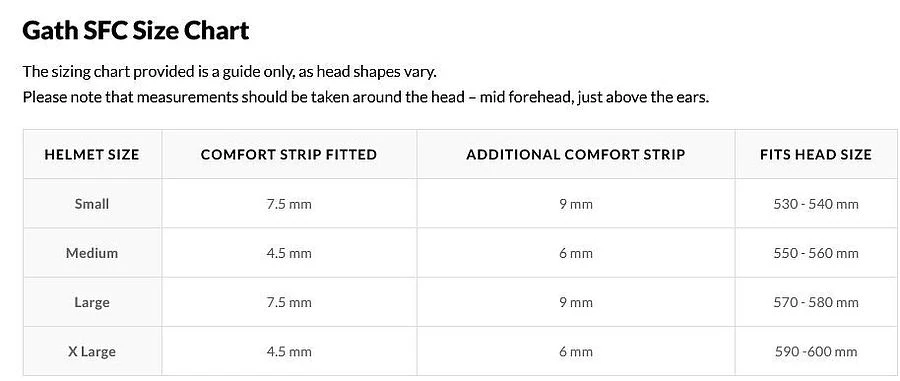 Helmet Size Comfort Strip Fitted Additional Comfort Strip Fits Head Size